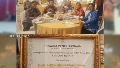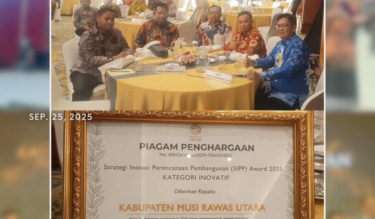 MURATARA – Kabupaten Musi Rawas Utara kembali menorehkan prestasi membanggakan di tingkat nasional. Pada ajang Strategi Inovasi Perencanaan Pembangunan (SIPP) Award 2025,